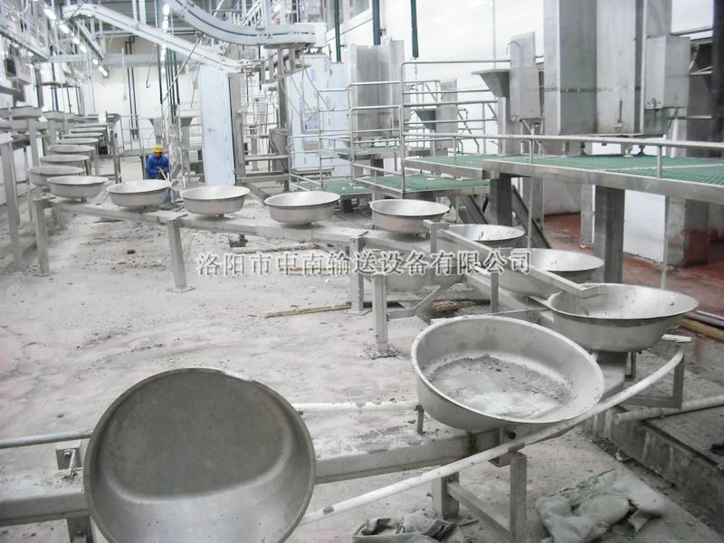 同步衛(wèi)檢線可分為:落地式和懸掛式。將屠體的頭、腸、胃、心、肝與胴體同步對好檢驗,紅臟與白臟懸掛在衛(wèi)檢線上,按設(shè)定的速度與胴體加工線同步運行,由人工對內(nèi)臟進行充分檢驗檢疫,這樣既保證了肉質(zhì)的衛(wèi)生質(zhì)量,又符合國家有關(guān)衛(wèi)生檢測標準。該設(shè)備運行平穩(wěn),同步準確,是屠宰加工中不可缺少的裝置之一。